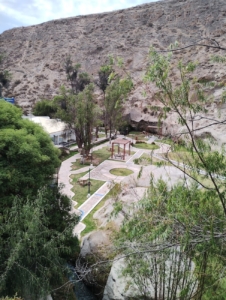 Un vistazo a la tranquilidad que se respira en las Aguas Termales de Yura. Se aprecia un espacio cuidado con áreas de descanso, senderos y vegetación.