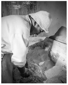 … “Para este oficio se recomienda el uso de sal fina, pero se ha generalizado en nuestro medio el uso de sal graneada. Es un ingrediente de suma importancia porque da a la masa fuerza y cohesión para el levante; además contrarresta el sabor desagradable de ciertas harinas, haciendo más agradables y digestivo el pan.” …