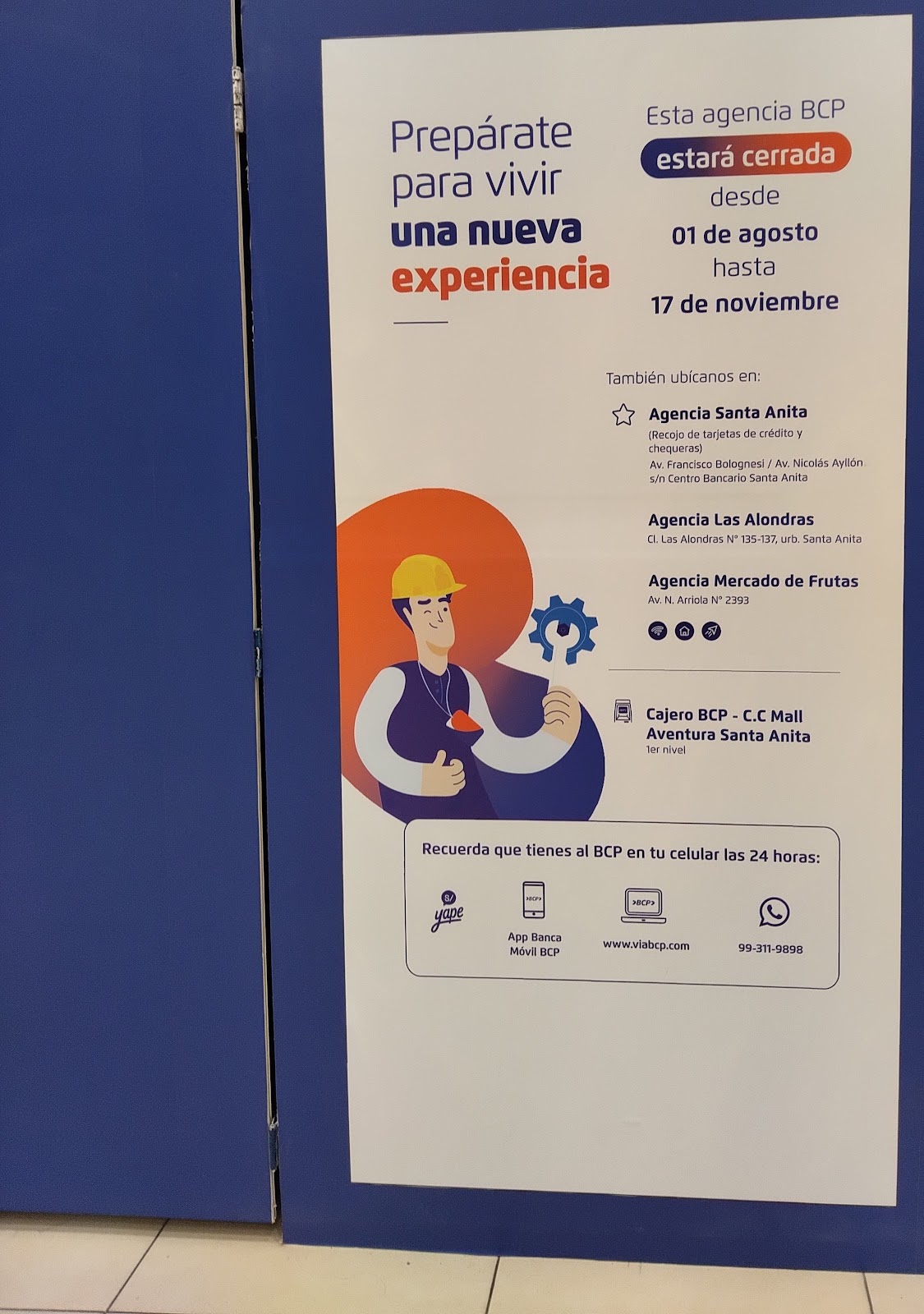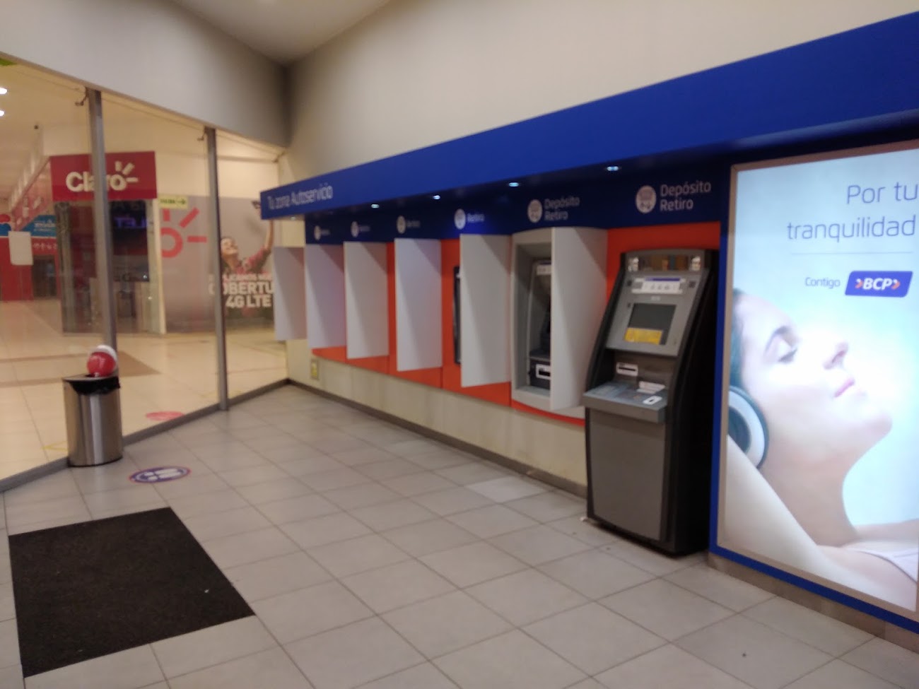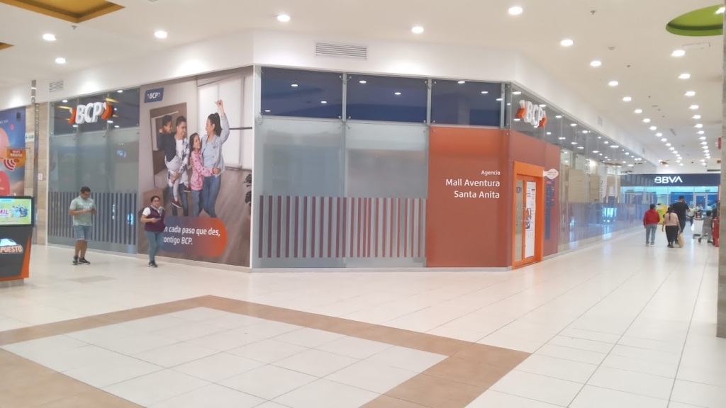 El bcp se encuentra en el sótano del Mall, al frente del Tottus.