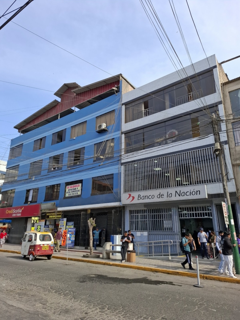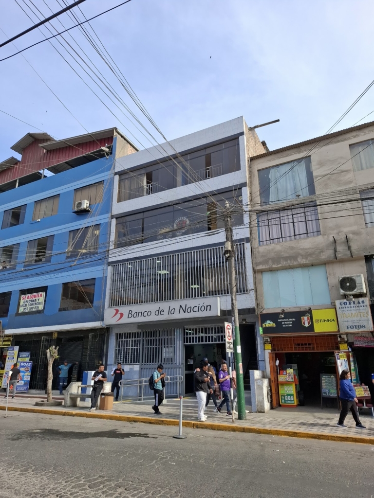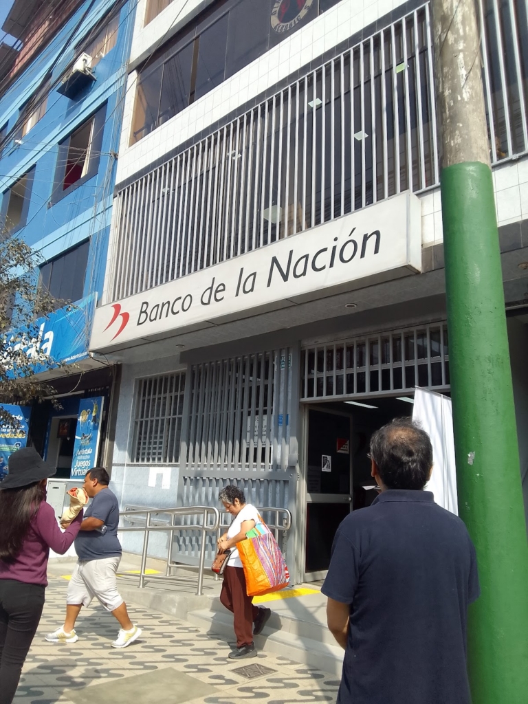 11 de Marzo 2020 siendo las 08.50 un cumulo de personas hacen una inmensa cola en la cuadra tres de la avenida Gran Chimu para ingresar al Banco De La Nación del Perú, se observa dos colas una de edad con el cabello blanco y otra persona de diferentes edades.