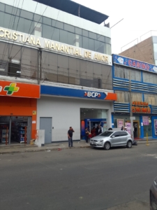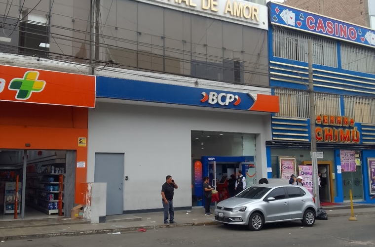 Agencia bancaria en av Gran Chimu cuadra 8, no cuenta con cochera propia.