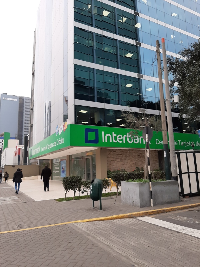 Edificio de oficinas del banco Interbank, donde en el primer piso se encuentra una genia del banco.