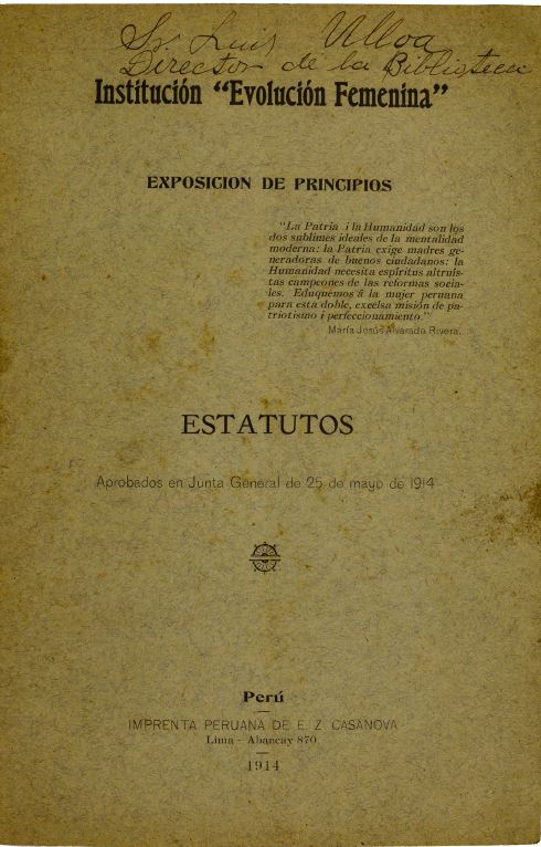 Institución «Evolución Femenina» : Exposición de principios : Estatutos aprobados en Junta General de 25 de mayo de 1914