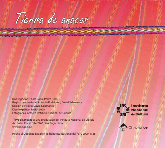 Tierra de anacos es un libro que documenta un proyecto de investigación y salvaguardia sobre el uso del anaco, una prenda tradicional de origen prehispánico empleada por comunidades del pueblo de Camilaca (Tacna, Perú).