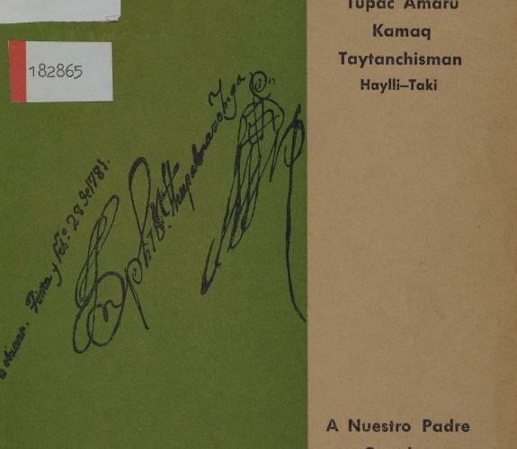 Tupac Amaru kamaq taytanchisman: haylli-taki = A nuestro padre creador Tupac Amaru : himno-canción