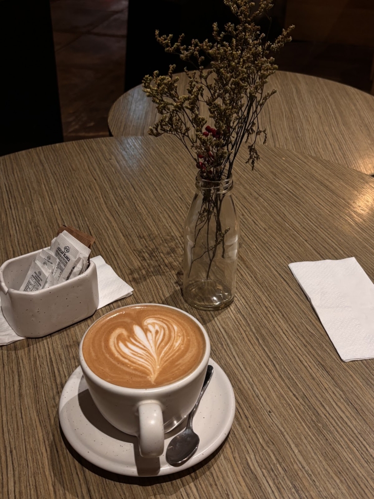 Me encantó todo, el café buenísimo, yo pedí el spiced moccha, ya quiero volver para tomarlo de nuevo, la combinación de sabores es insuperable. También probé las tostas cotidianas que vienen con jamón serrano, queso y peras caramelizadas que le combina súper bien. El ambiente también es lindo, tiene 2 pisos y todos son muy amables