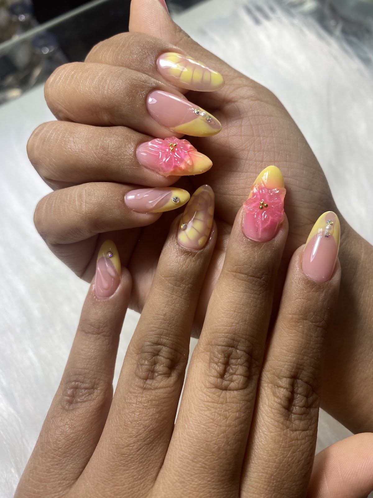 Mi experiencia con Jescenia fue muy agradable, ella me hizo rubber en las uñas y lo que más me gustó aparte del servicio fue que supo guiarme con la combinación de esmaltes a elegir. Me encantó como quedaron 😊. También, tuvo oportunidad de atenderme con Evelyn, quien me comentó sobre una promoción de hidratación para el cabello que aproveché en tomar, mi cabello quedó muy brilloso y mientras me peinaba, me dio tips para un futuro corte. Salón 100% recomendado, como plus mientras eres atendida de invitan una bebida. Yo elegí ☕️