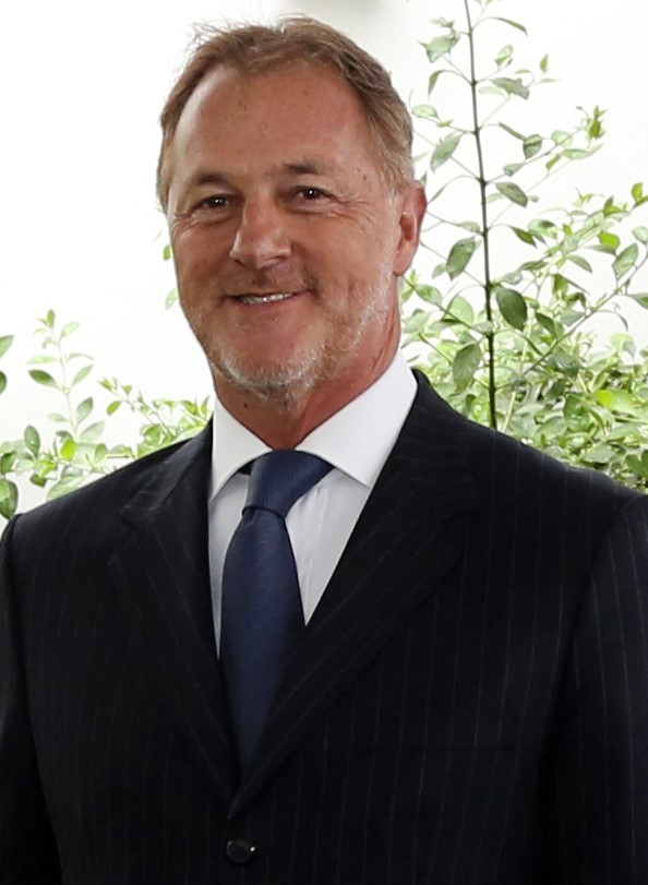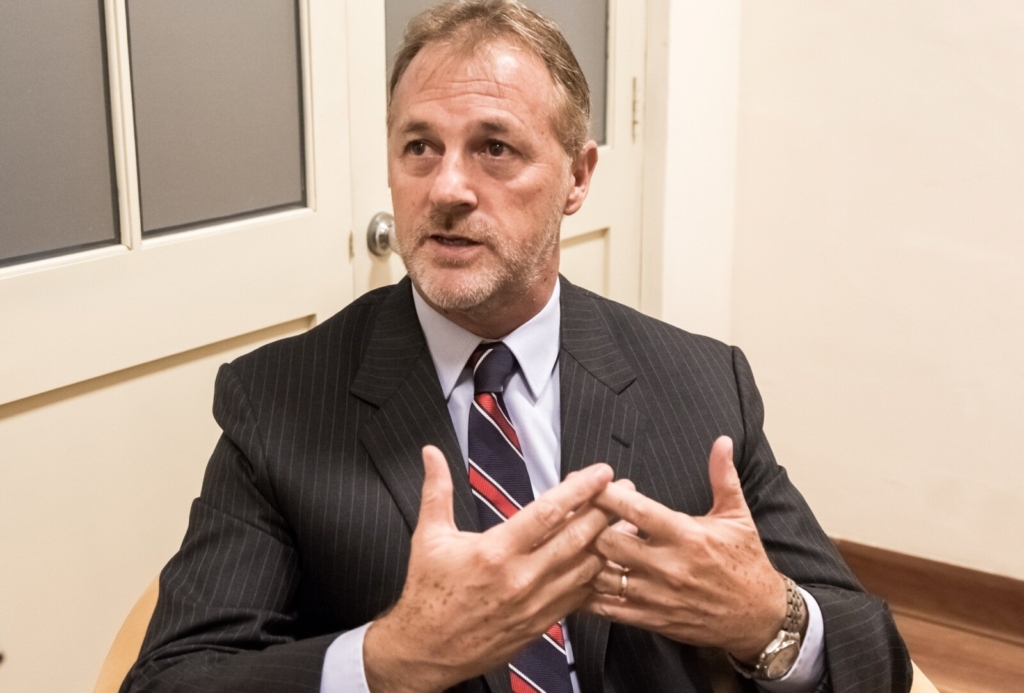 Vistiendo una camisa celeste, Wells ofrece una sonrisa genuina, reflejando su experiencia en los campos del derecho, la política y los negocios.