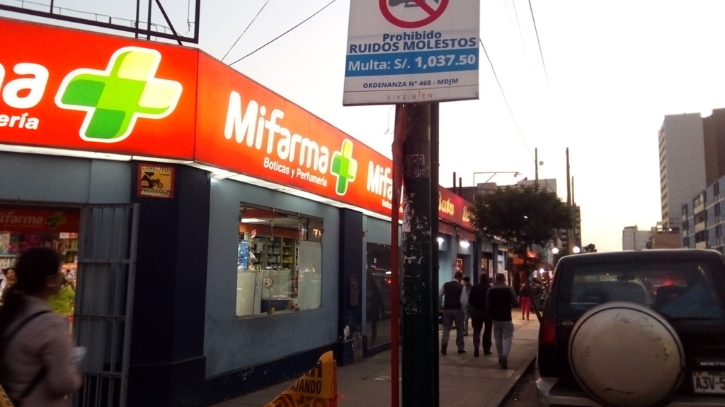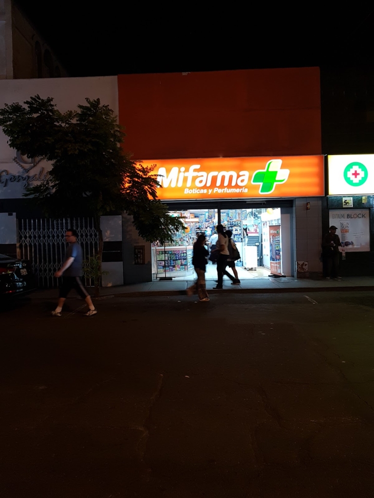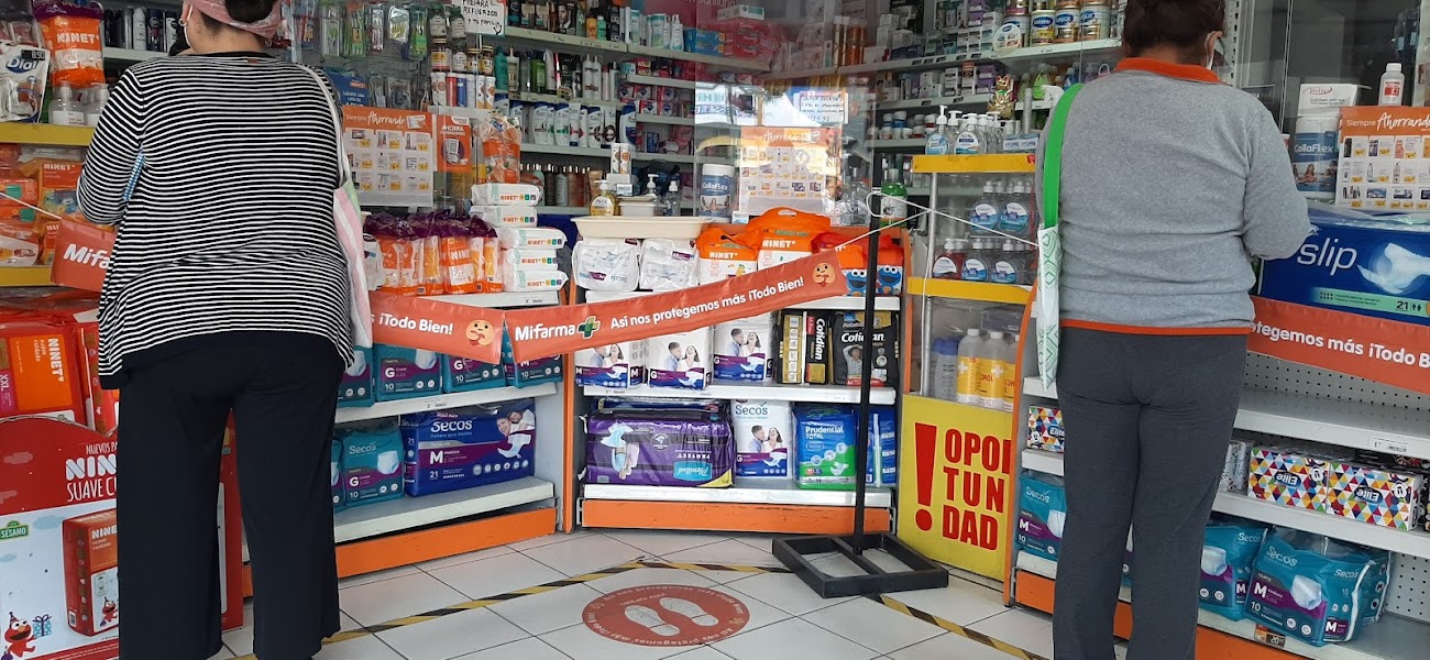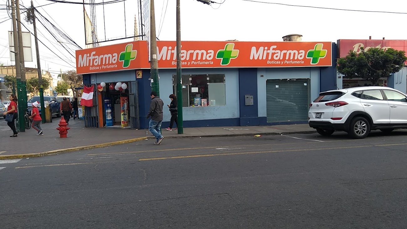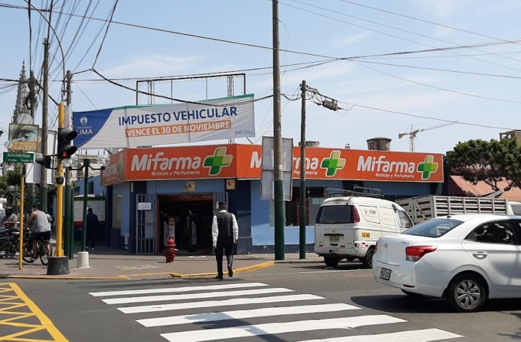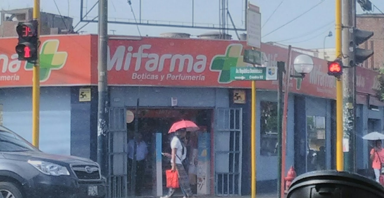 Pequeño local de la cadena de boticas MiFarma ubicado en el cruce de las avenidas República Dominicana y Arnaldo Márquez en el distrito de Jesús María en uno de los locales exteriores del Mercado San José.