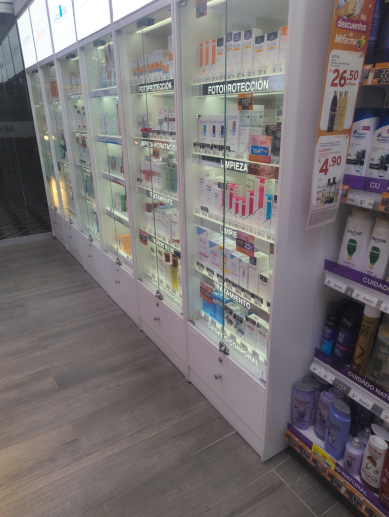 Una farmacia no tan grande pero tiene lo escencial para el cuidado de la piel , vitaminas y las medicinas . Recuerda tener tu monedero del ahorro