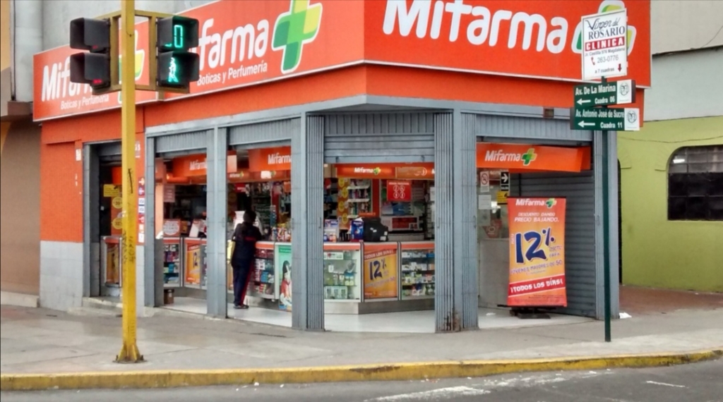 Local de la cadena de boticas MiFarma ubicada en el cruce de las avenidas La Marina y Sucre en el distrito de Pueblo Libre.