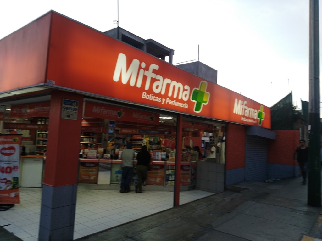 Local de Mifarma ubicado en la interseccion de Av Ayacucho y Tomás Marsano en Surco, Lima. Hay que hablar fuerte en la tienda pues hay mucho ruido por el trafico